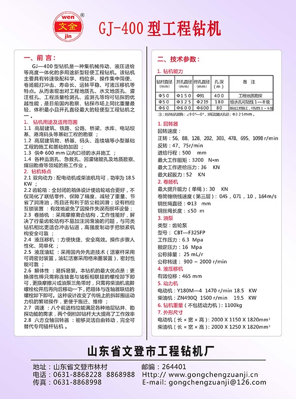以上是關(guān)于GJ-400型鉆機(jī)廠家,GJ-400型鉆機(jī)價(jià)格,GJ-400型鉆機(jī)哪家好的具體介紹。